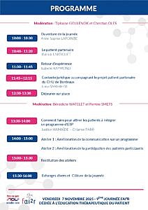Nous vous donnons rendez-vous le Vendredi 07 novembre 2025 pour la 9ème édition de votre journée annuelle dédiée à l’Éducation Thérapeutique du Patient.