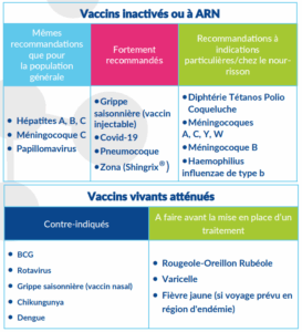 Concernant les vaccins inactivés comme pour la grippe et le pneumocoque, ils sont fortement recommandés !